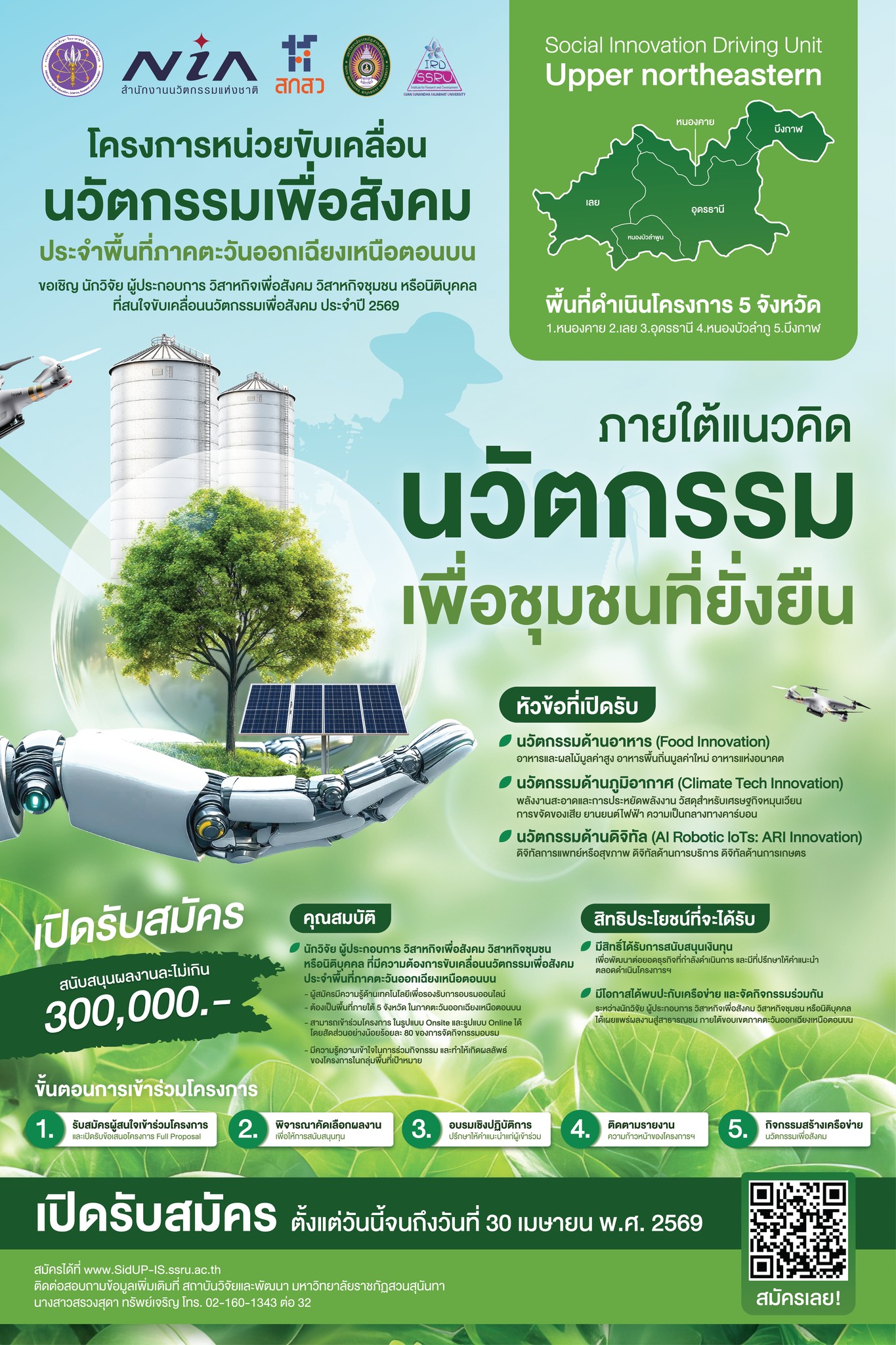 หน่วยขับเคลื่อนนวัตกรรมเพื่อสังคม ประจำพื้นที่ภาคตะวันออกเฉียงเหนือตอนบน (Social Innovation Driving Unit: upper northeastern) สำนักงานนวัตกรรมแห่งชาติ (องค์การมหาชน) ร่วมกับ มหาวิทยาลัยราชภัฏสวนสุนันทา ภายใต้แนวคิด “นวัตกรรมเพื่อชุมชนที่ยั่งยืน”